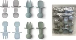 4 Setjes – Baby Bestek – Vork En Lepel – Kinderbestekset – Groen Blauw