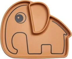 Elphee is klaar om eten leuk te maken! De Done by Deer stick & stay plate heeft twee vakken voor het eten en kan op een gladde oppervlakte vastgezet worden.
