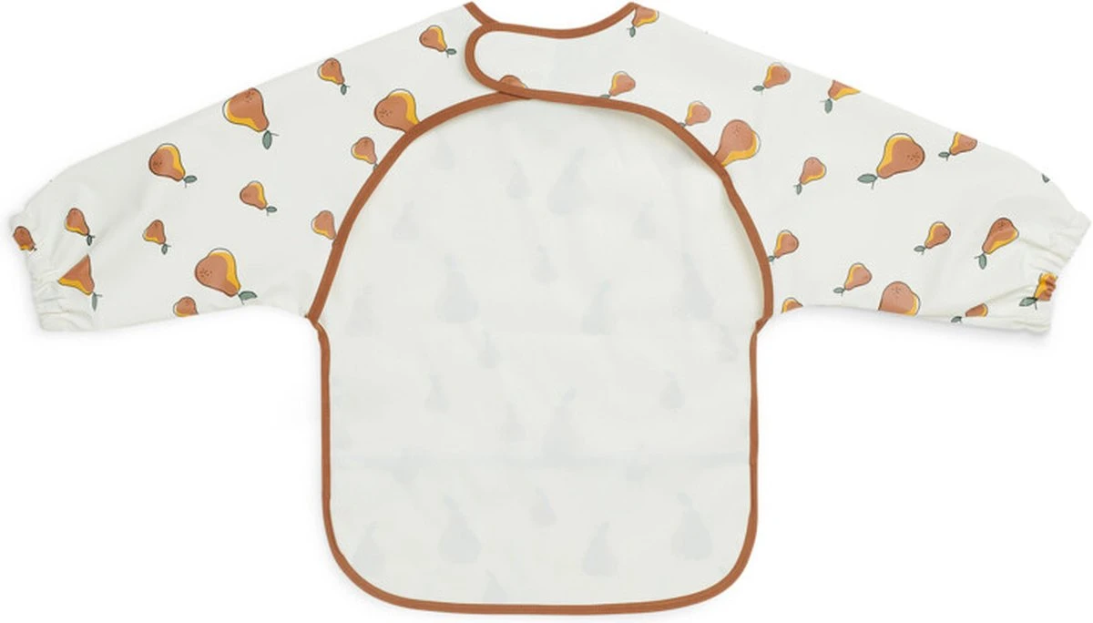 Deze slab met mouwen is geweldig. Het is een soort schortje en beschermt de kleertjes van jouw baby of dreumes extra goed door die mouwtjes.
