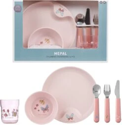 Mepal Mio – Kinderservies Set 6-delig – Bestaat Uit Een Bord, Schaaltje, Glas En Bestek – Flowers & Butterflies – Licht In Gewicht – Kan Tegen Een Stootje
