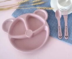 Merkloos Allernieuwste Milieuvriendelijk Baby Bordje Met Vakjes Auto ROZE – Duurzaam Baby Peuter Kleuter Kinder Bord – Eco Kinderservies Bord Met Vakken Auto – Kleur Rose