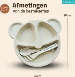 Zigla – Kinderbestek – Baby Bestek – Baby Servies – Kinderbord Met Vakjes – Oefenbestek – Bord/Vork/Lepel – Crème/Blauw – Set Van 2
