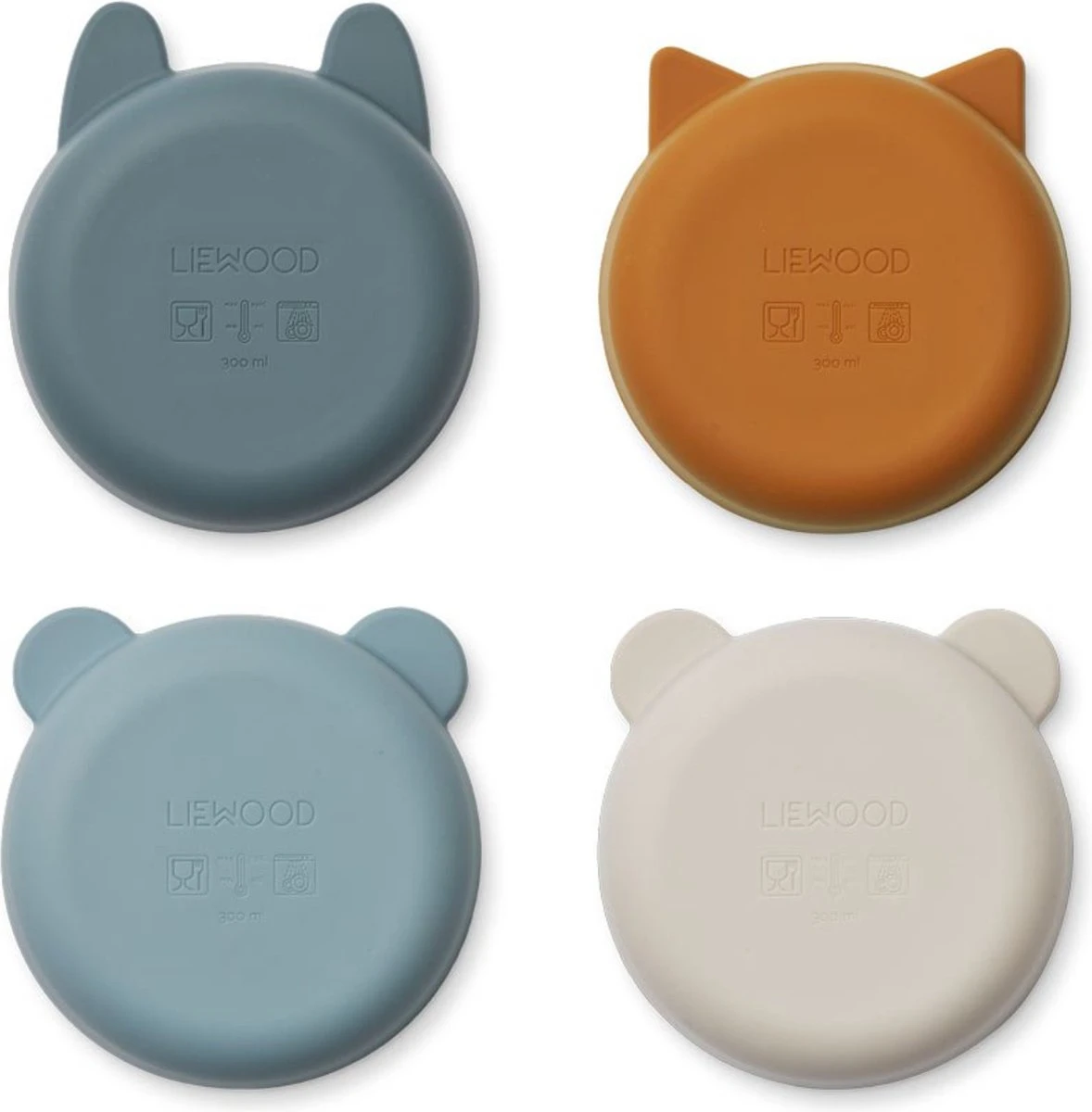 De Liewood Iggy Siliconen Kom 4-Pack is een must have voor je kleintje. Ideaal om een lekker stukje fruit of een warm hapje uit te eten. De set bestaat uit 4 verschillende kommen met 4 verschillende prints en oortjes van Liewood-diertjes.