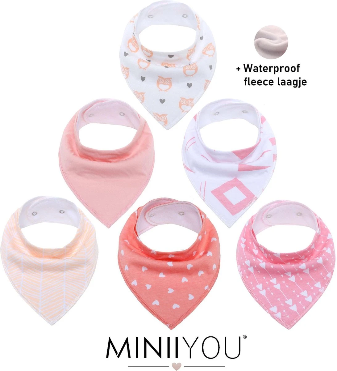 Deze stoere bandana slabbetjes zijn erg handig voor het opvangen van kwijl bij het doorkomen van de tandjes. De slab heeft een extra laag aan de achterzijde dat extra vocht absorbeert. Hierdoor blijft de kleding van jouw MINII droog, wat erg comfortabel is voor je kindje. De slabbetjes zijn gemaakt van katoen en zijn voorzien van mooie stoere prints. Het slabbetje kan in 2 maten vastgezet worden door middel van drukknoppen. Hierdoor zal elk kindje de slabber passen. Deze slabbetjes zijn ook erg leuk om als (kraam)cadeau te geven! Verkrijgbaar in set van 6.