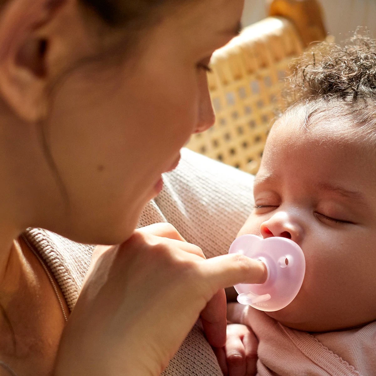 De Soothie heeft een duurzaam ontwerp uit één stuk, volledig gemaakt van flexibele silicone van medische kwaliteit. Ons team van experts heeft de speen speciaal ontworpen voor baby’s van 0-6 maanden
