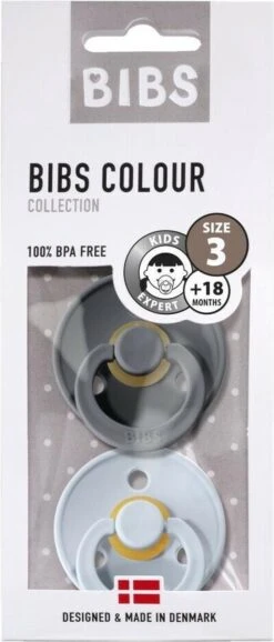BiBS – Colour Collection – Stage 3 Fopspeen – 18+ Maanden – 2 Stuks – Iron / Baby Blue