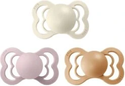 BIBS Supreme Fopspeen | Bundel Set 3 Stuks | T1 | Maat 1 | 0-6 Maanden | Silicone | Vanilla, Peach, Pink Plum