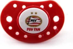 PSV fopspeen 0 tot 6 maanden. De speen heeft een bolle en platte kant, stimuleert de ontwikkeling van de spraak en tongspieren.